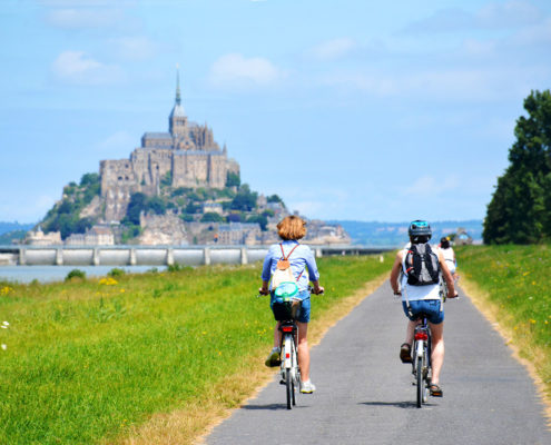 En famille, en VTT ou en cyclotourisme, la baie du Mont Saint-Michel vous offre un panorama unique.